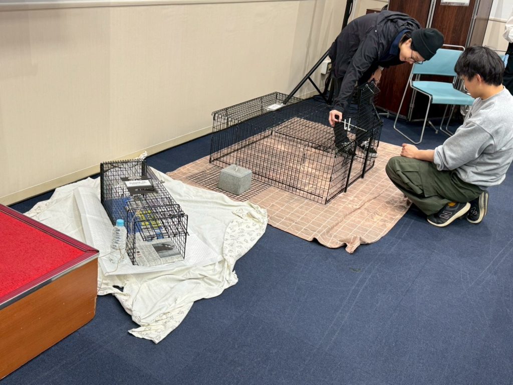 ねこから目線。からは、代表の小池様、ねこから目線。東京の小松様にご登壇いただき、ねこの捕獲についての基本的なお話から今まであったトラブルやその解決法、また捕獲に使用する機材の展示やその使用方法などさまざまなお話をしていただけました。