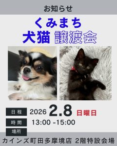 島忠ホームズ町田三輪店で譲渡会を開催します