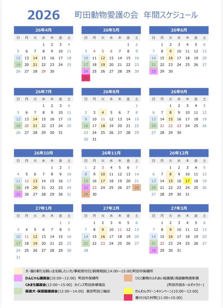 🐶🐈飼育相談や譲渡会参加事前受付日 ※下のカレンダー参照